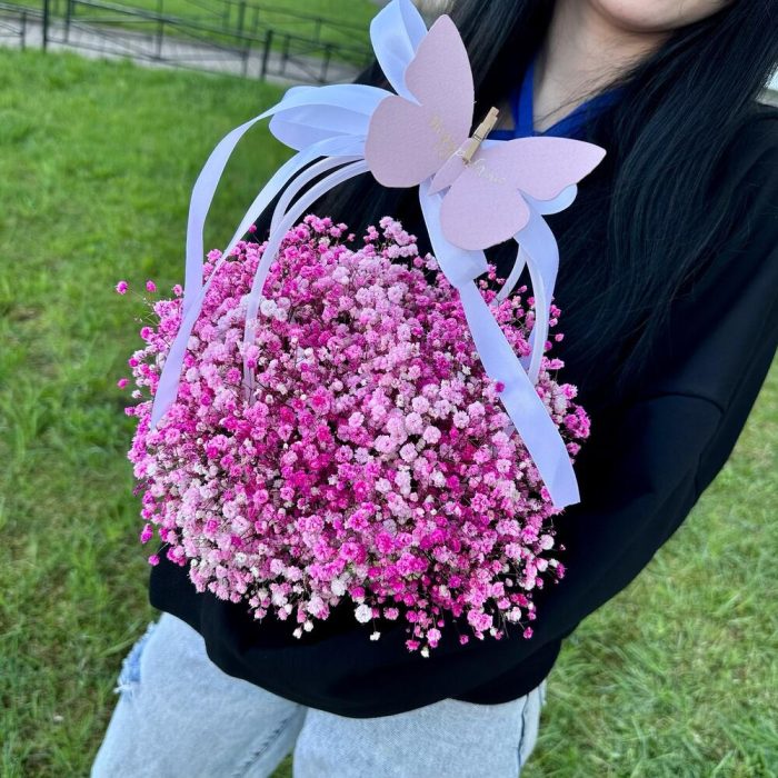 Розовая гипсофила в милой сумочке