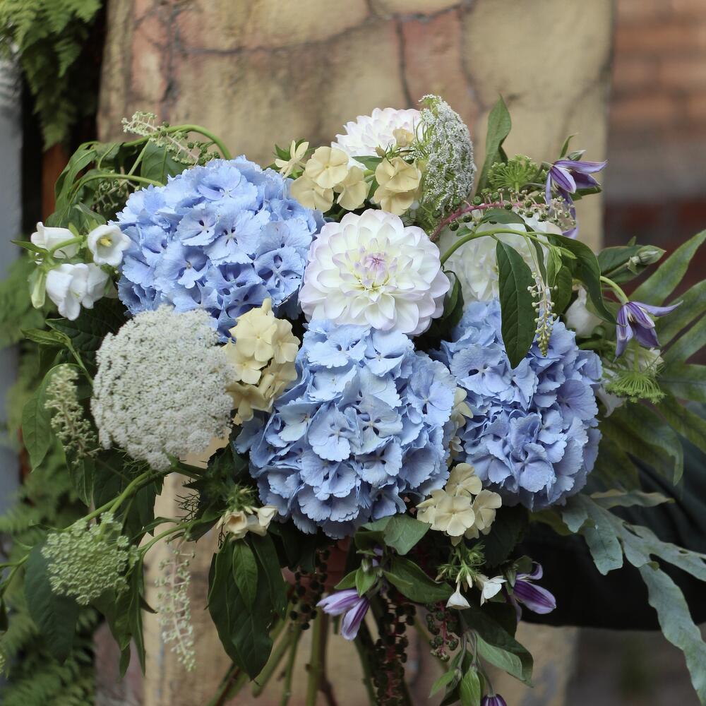 “Эвкалиптическая роскошь” гортензия и пионовидная кустовая роза