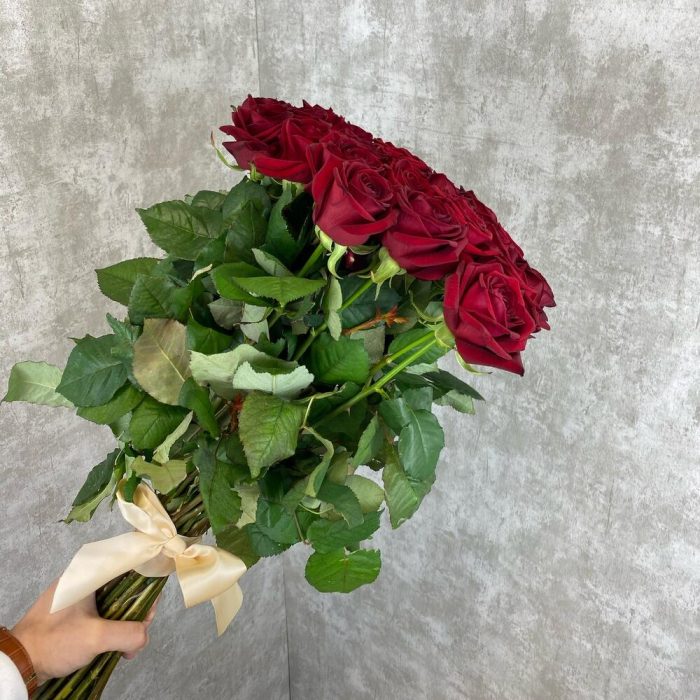 Роза 70 см – 35 шт.Атласная лента – 1 шт.