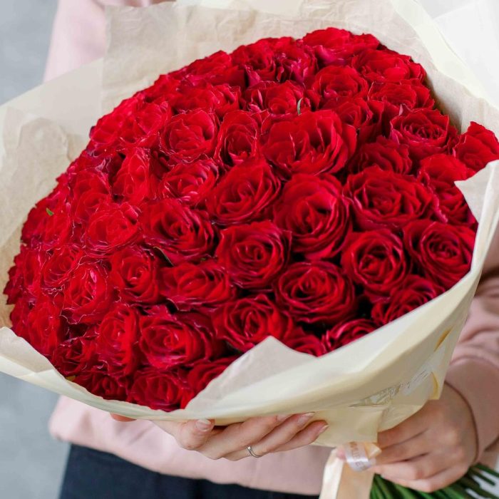 Букет из 65 красных роз 40см (Кения)