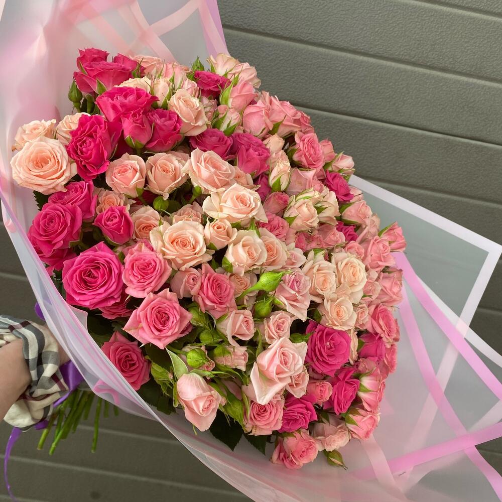 Лента атласная – 1 шт.Упаковка дизайнерская – 1 шт.микс из кустовой розы – 40 шт.