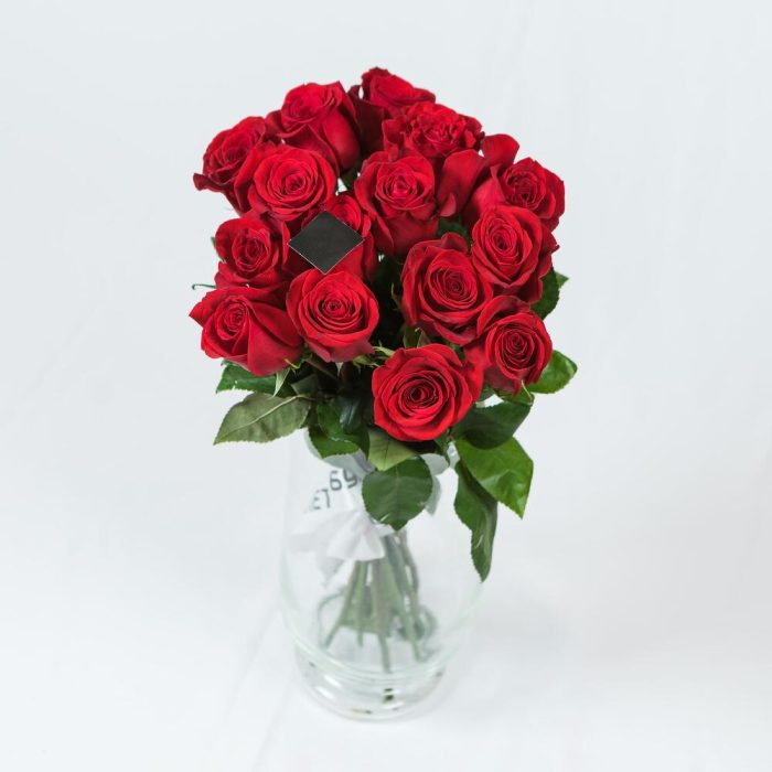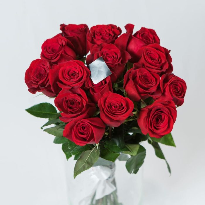 Роза Эквадор – 15 шт.Пленка прозрачная – 1 шт.Лента атласная – 1 шт.