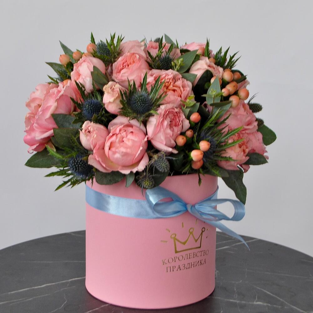Пионовидные розы в окружении ягод гиперикума, голубые колючки делают этот букет просто волшебным.Как быстро проносится прекрасное лето❤️ радуйте своих любимых яркими летними букетам.Красочная композиция ,прекрасно подойдёт в подарок учителю Такую композицию можно подарить по любому поводу, она станет прекрасным украшением стола, интерьера, красива со всех сторон. Подойдёт в подарок на новоселье, день рождения, юбилей и просто порадовать дорогого человека
