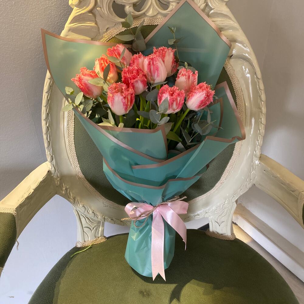 Гвоздики, Лизиантусы, Розы, Тюльпаны